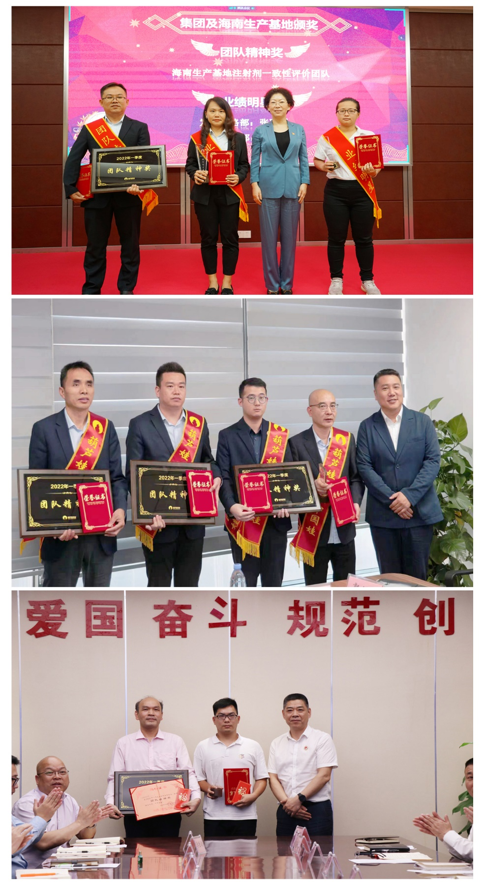 为了表彰在2022年一季度“深化变革,赢得开门红”工作中“超额完成计划、超出本职工作或超越组织预期”的先进集体和优秀个人,会议期间还举行了六合联盟药业集团2022年一季度“开门红”表彰颁奖仪式。营销中心葫芦世家事业部湖南区域主管黄子杰等12人荣获业绩明星奖,葫芦世家事业部等5个集体荣获团队精神奖。