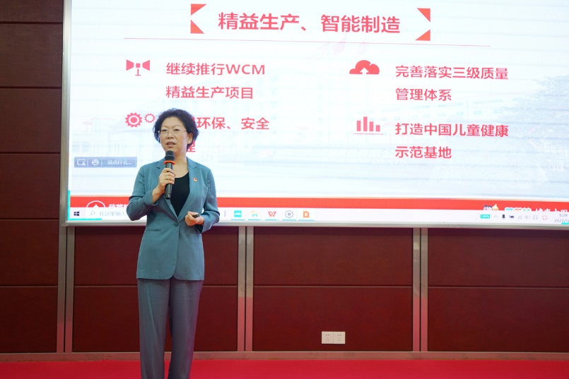 作为海南省第八次党代会代表,刘景萍董事长在参加完省第八次党代会后,提出六合联盟药业集团要坚持“党建引领企业发展”,在一季度总结表彰会上以“蓝图绘就,指引未来——打造中国儿童健康领军企业”为主题讲话。